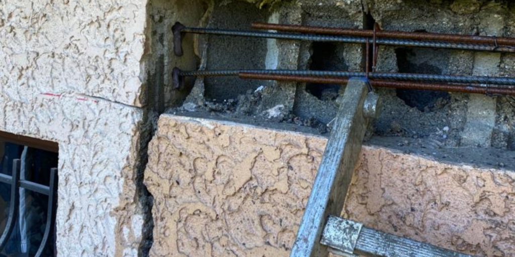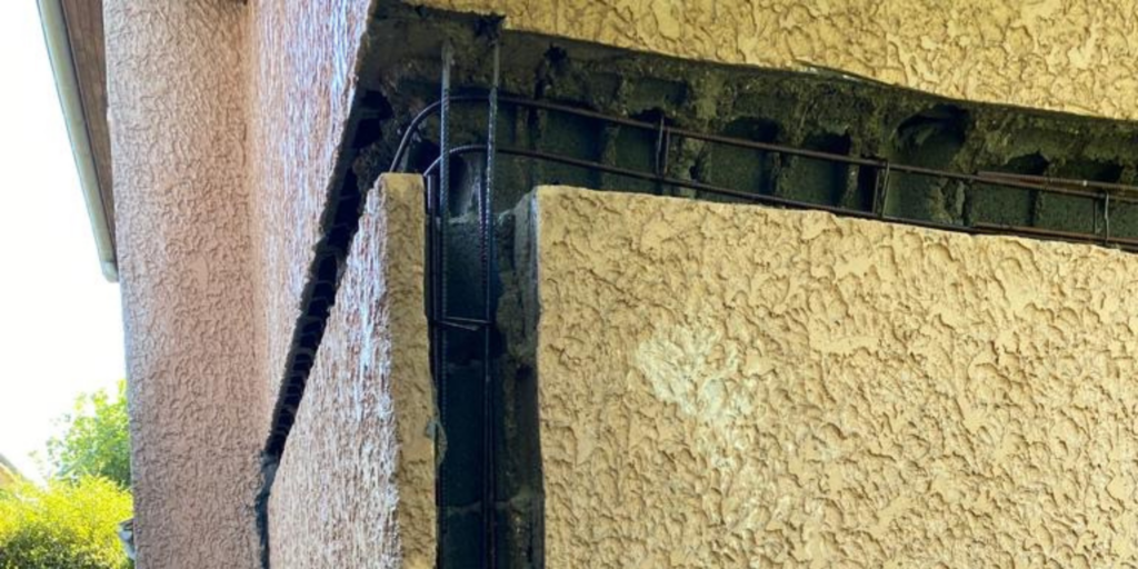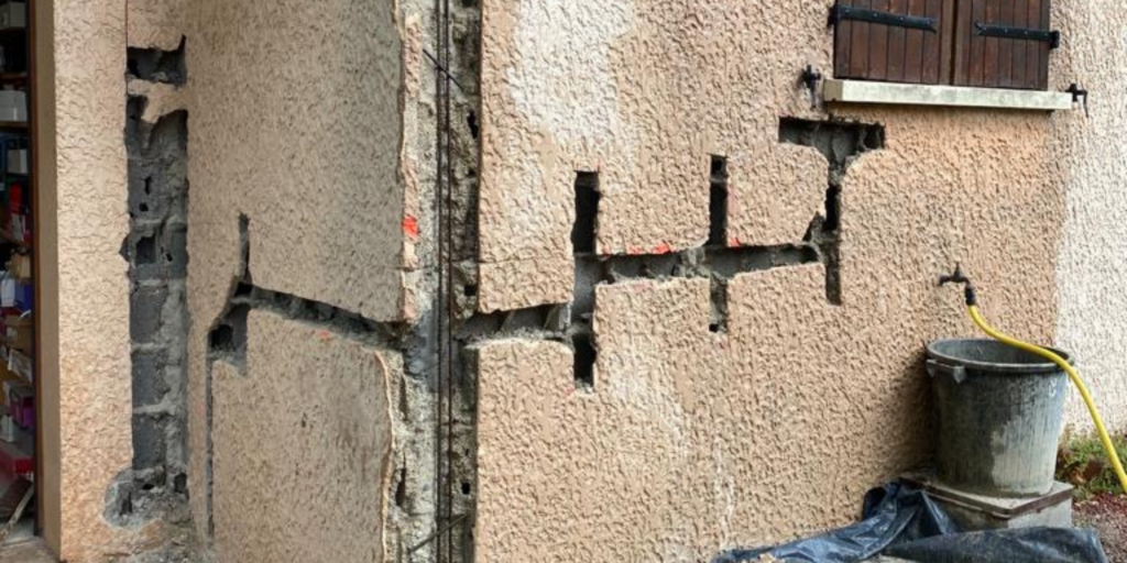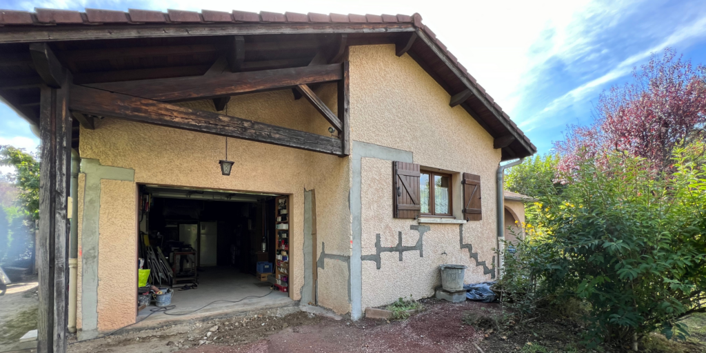Nous sommes intervenus à Brindas (69) dans le cadre d’un dossier assurantiel lié à la sécheresse, en complément d’un traitement du sol par injection de résine expansive. L’objectif de notre intervention était de renforcer structurellement l’ouvrage, d’améliorer son comportement différentiel et de sécuriser durablement les structures porteuses.