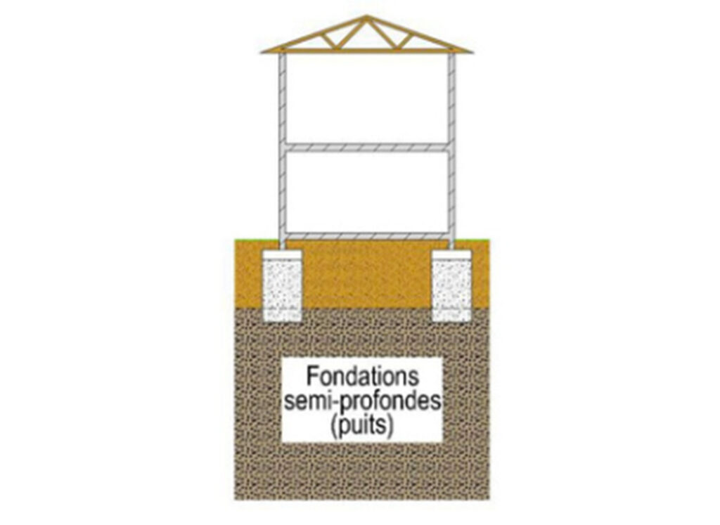 Les solutions semi profondes qui visent à approfondir l’assise du bâti afin de faire reposer la structure sur un sol avec de meilleures caractéristiques à des profondeurs faible à moyennes.
